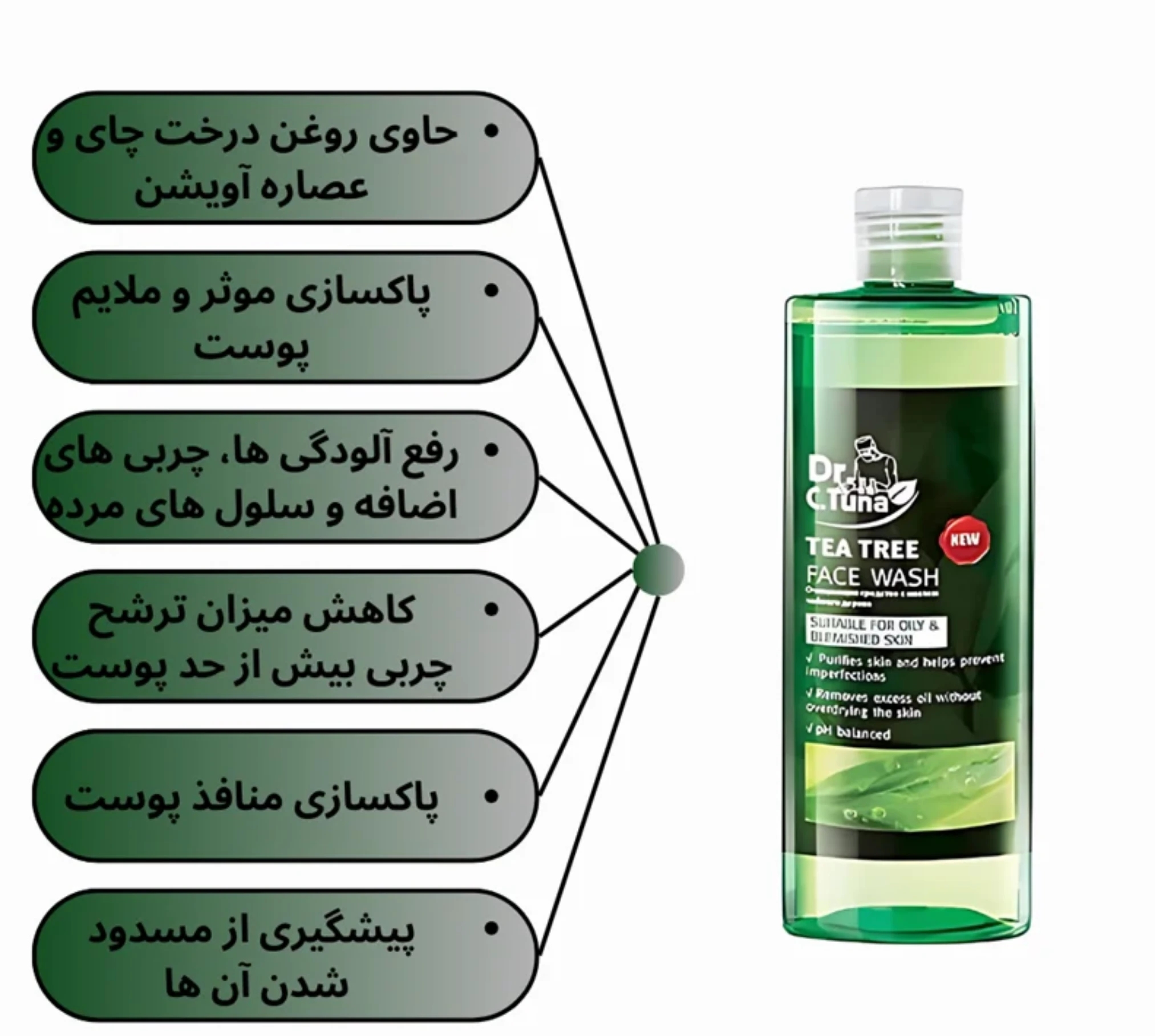 ژل شستشوی صورت فارماسی عصاره درخت چای ۲۲۵ میل مخصوص پوست چرب و مختلط